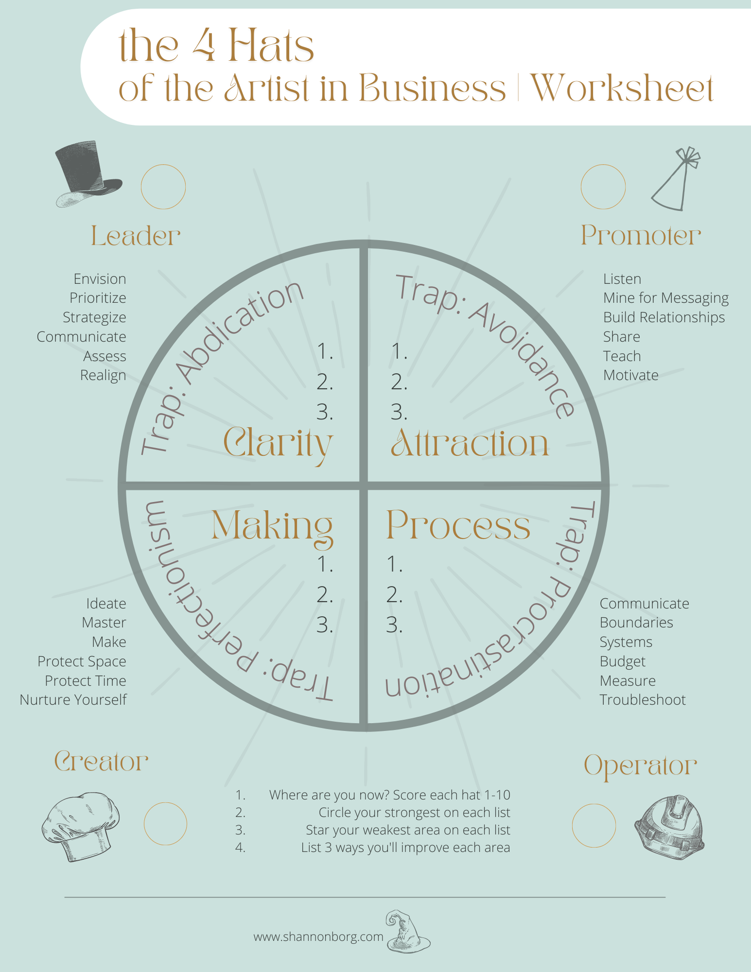 Like most solo entrepreneurs, you wear these 4 basic “hats” in your art business: