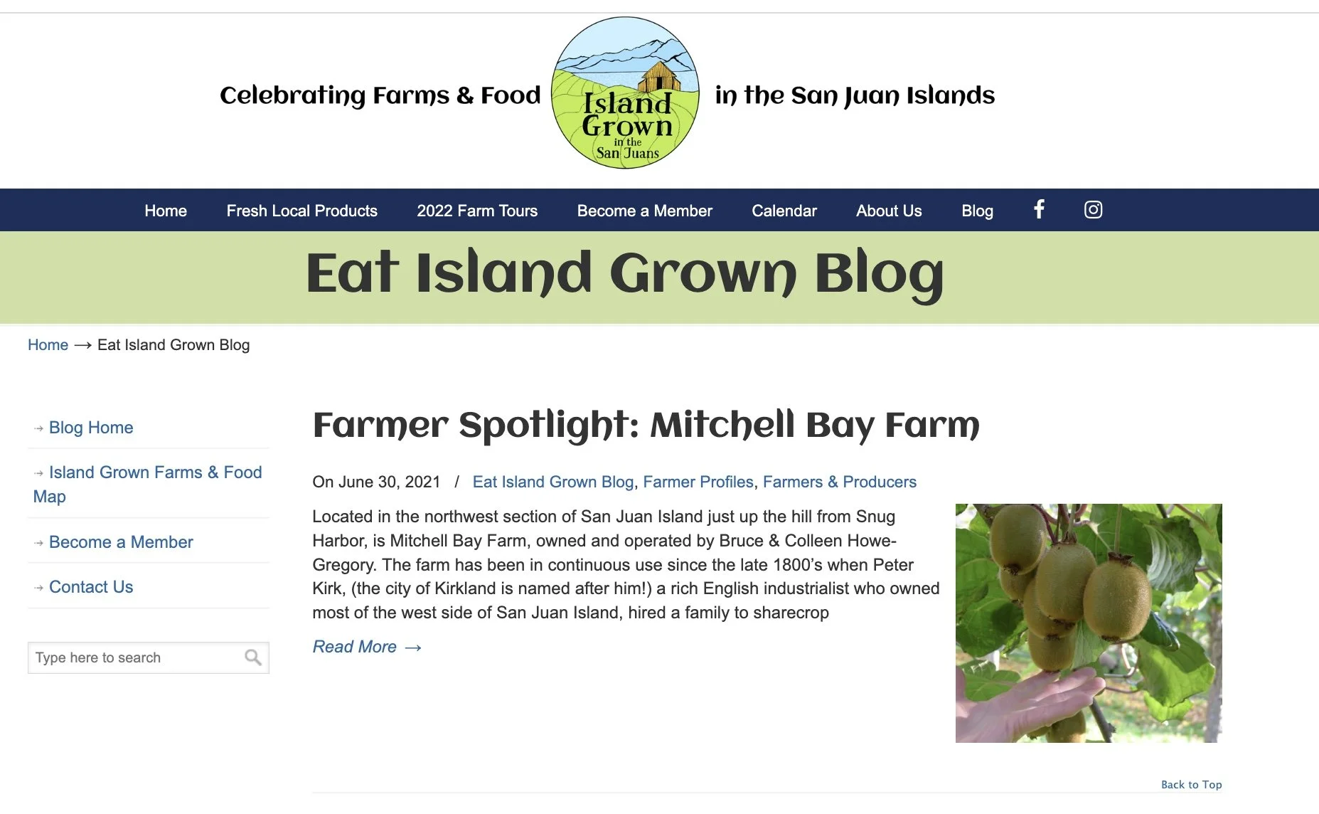 The San Juan Islands Agricultural Guild started while I was at the Visitors Bureau, and I helped start and coordinate the first Farm Tours, Island Farm Map, and Eat Island Grown promotions and blog.